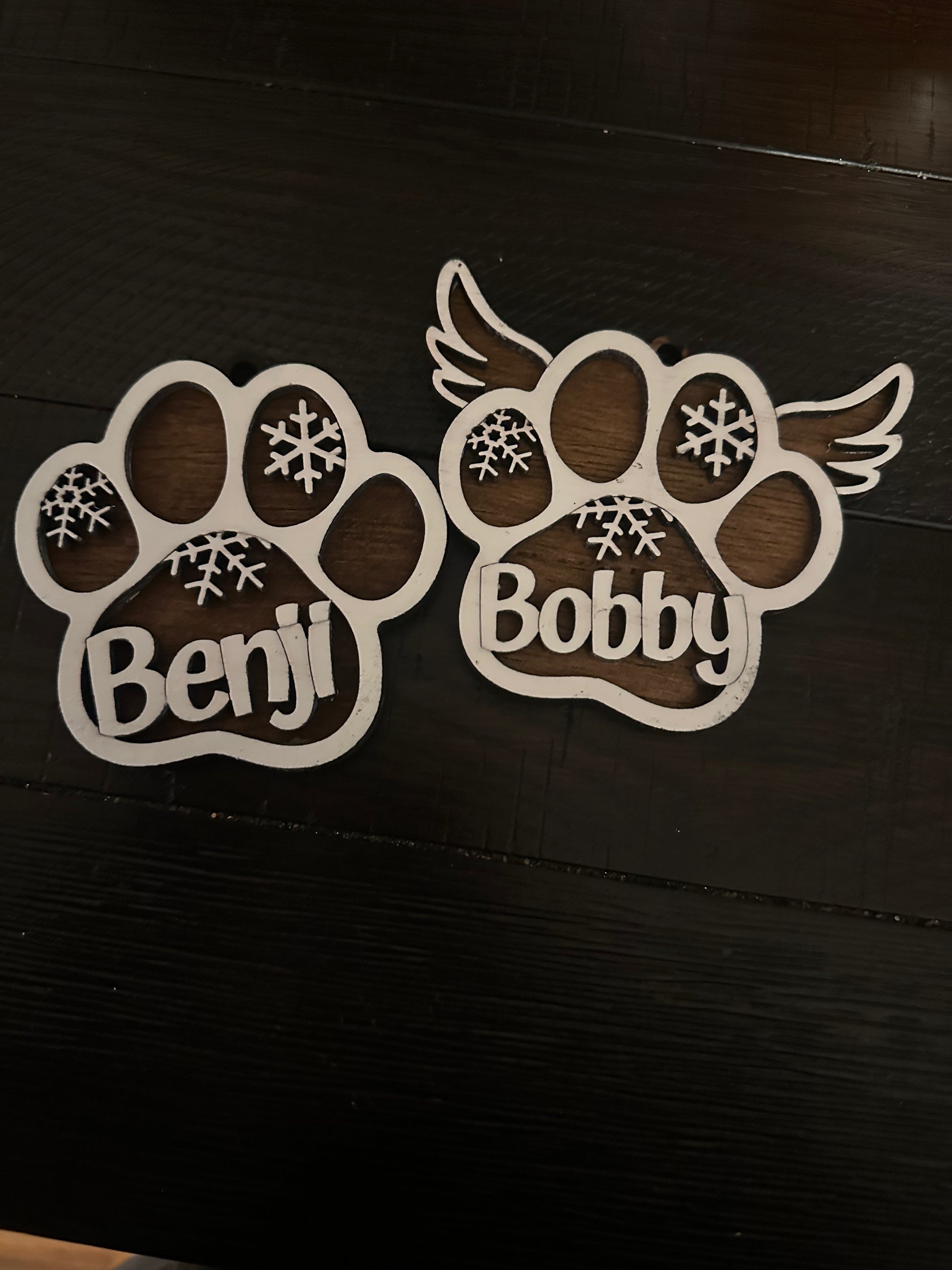 Adorable 3D name ornament for dogs and cats. Also available with wings. Perfect addition for your Christmas tree this year or to gift forward.